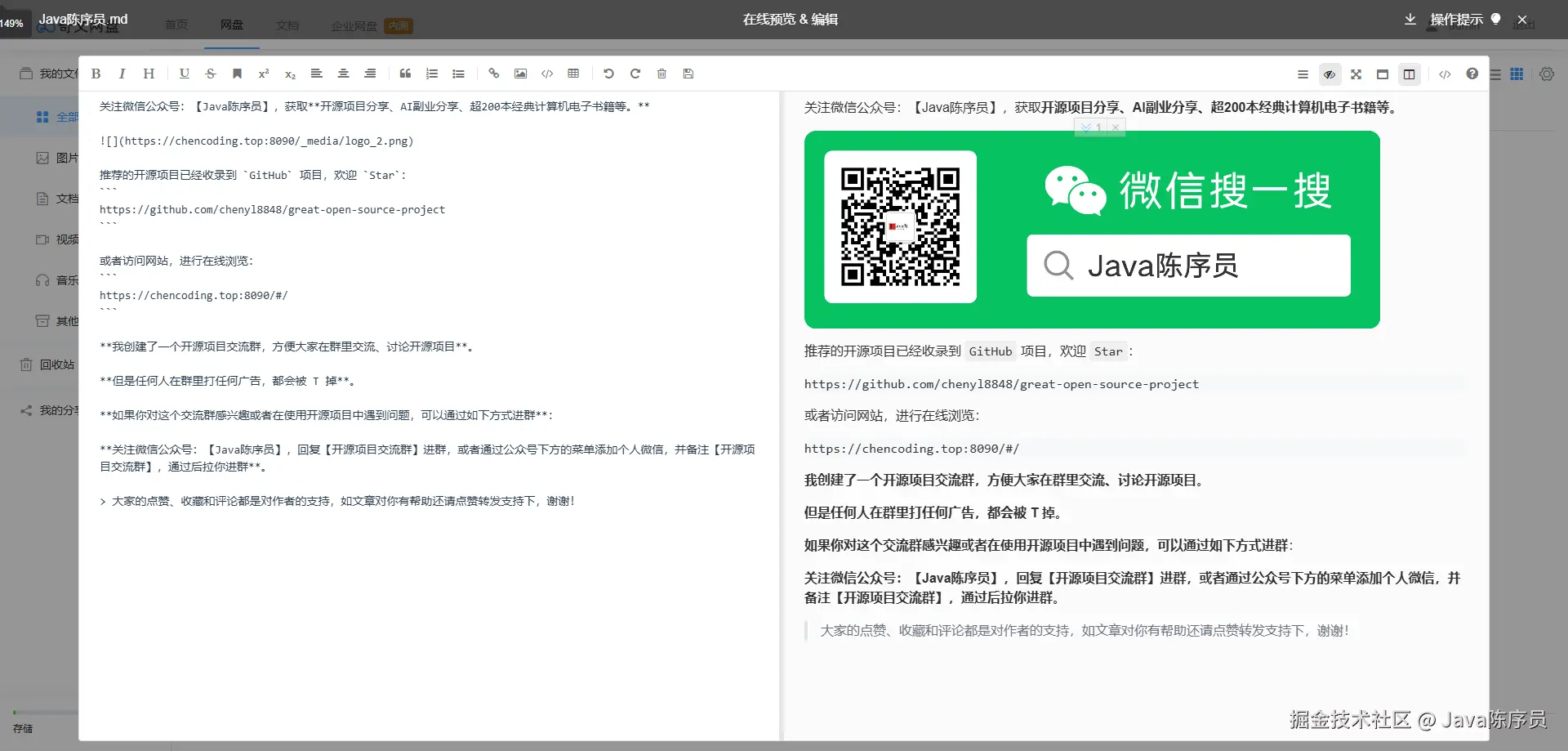可以说,qiwen-file 完全实现了一个网盘应有的功能,而且遵循 MIT 开源协议,完全开源。如果对其中的实现原理感兴趣,可以进行学习借鉴,也可以在此基础上进行二次开发和功能扩展~
