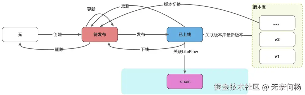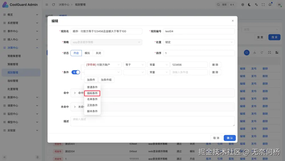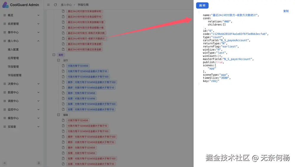 有了版本管理,引用关系就复杂了一些,举个例子:无论是编辑区还是运行区的规则可以引用任意定义的字段,但是指标只能引用已发布的指标,编辑中未发布的指标是不可引用的。