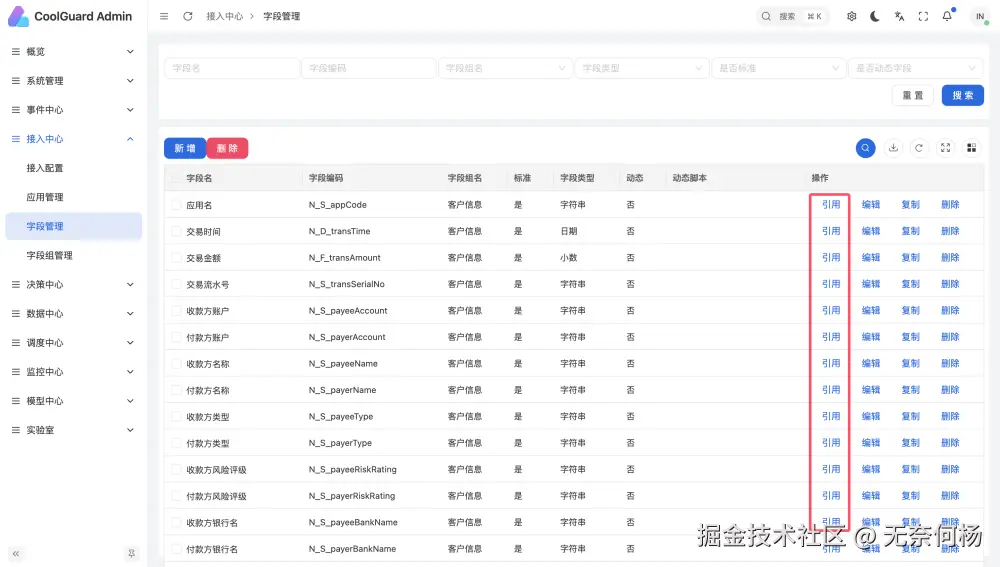 在coolguard中,只是目前引用关系大概只有这些,但是未来必定还会有其他,如:自定义表头、流程编排、模型字段、ETL等等引用。