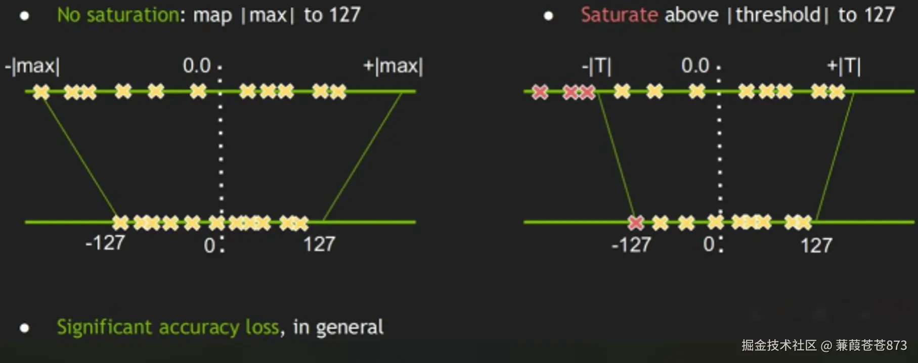 右侧代表没范围的数据:将数据压缩到-127到127之间,但是他的方法不一样得用期望和方差去处理。