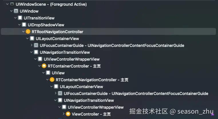 我们看一下一个被RTNavigationController包裹的页面层级:
