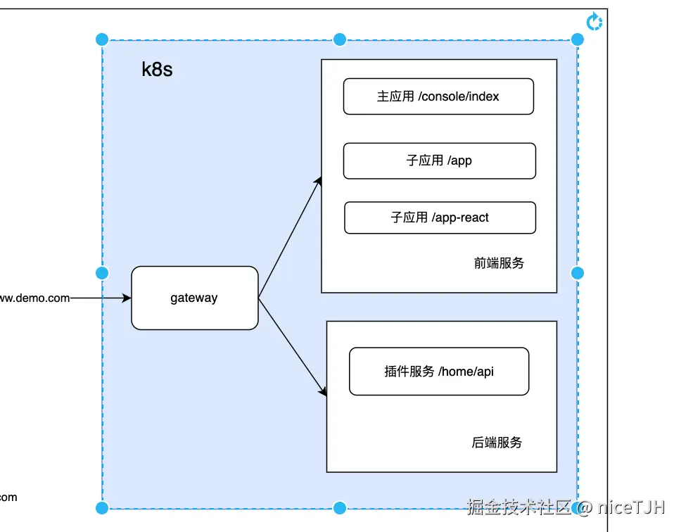 (后面 k8s 的 gateway 是根据前缀转发到不同的子应用)