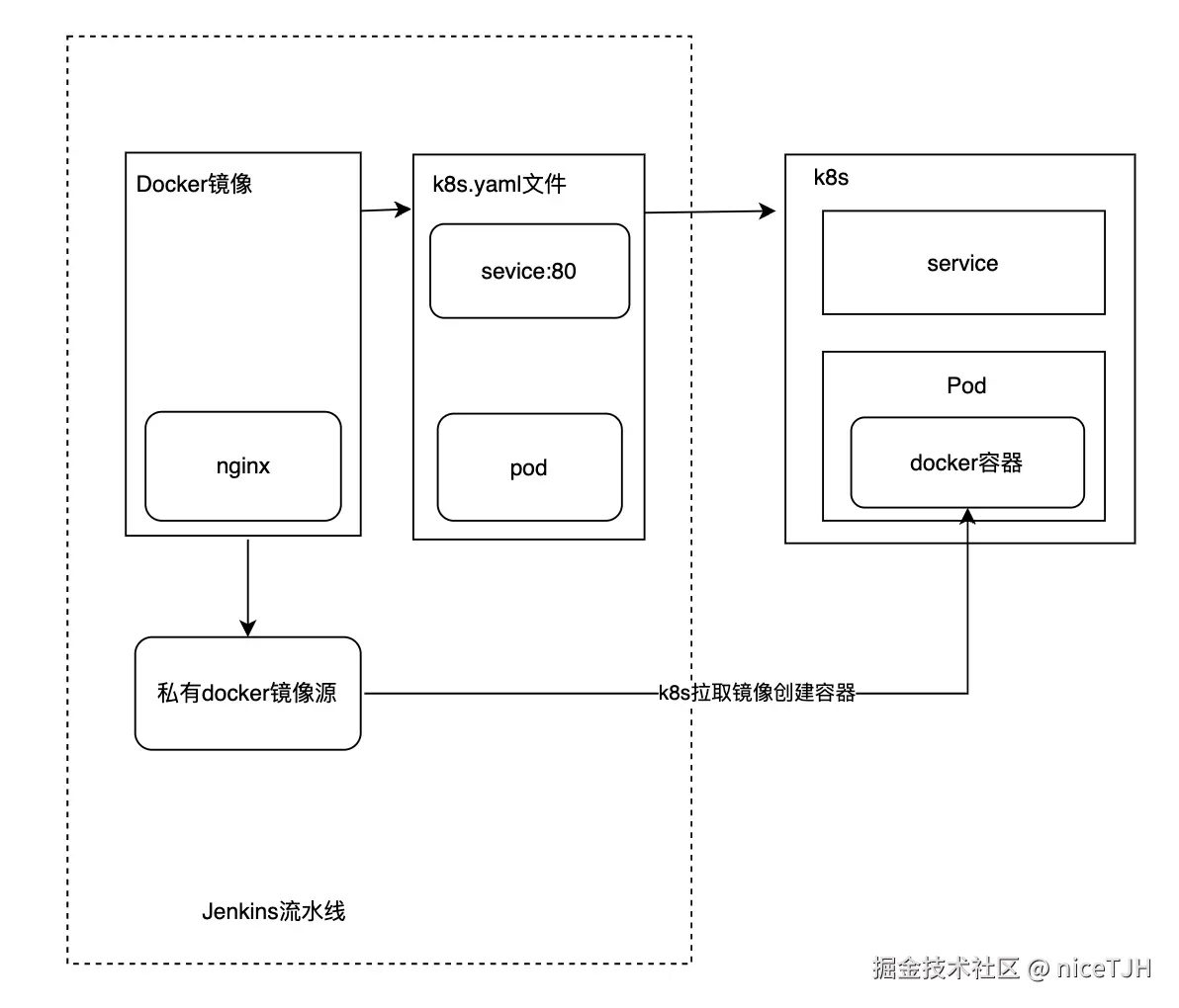 这里有几个名词:nginx、k8s、docker。