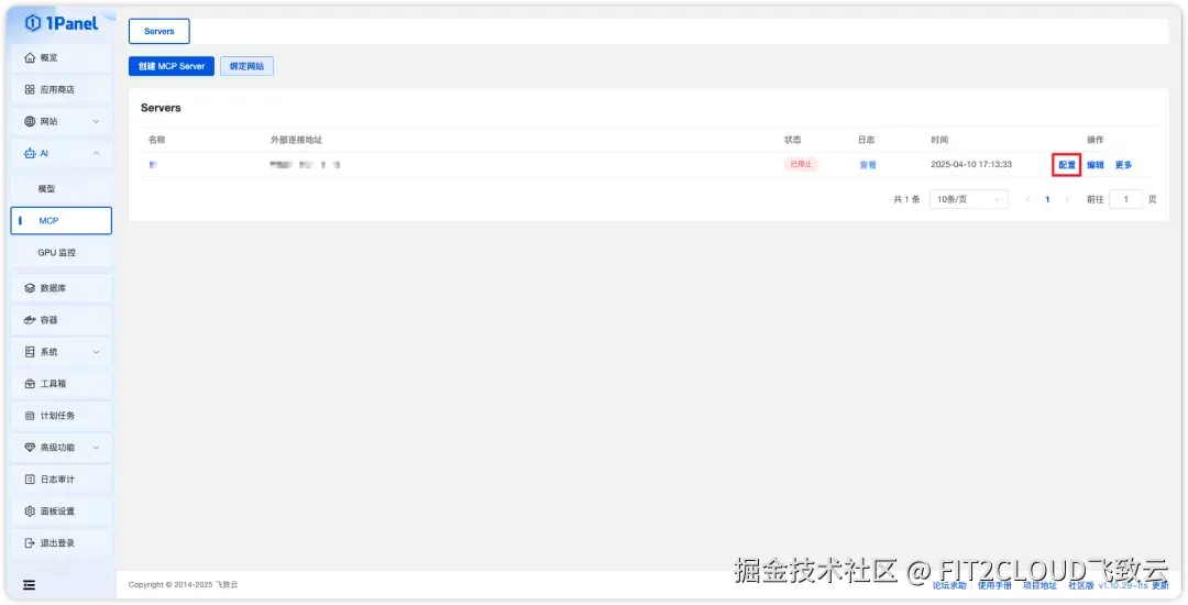然而在实际操作过程中,搭建MCP Server需要手动配置大量依赖,部署门槛较高,许多用户难以上手。为了解决这个问题,1Panel v1.10.29 LTS版本推出了原生的MCP Server管理功能,该功能通过容器化方式实现一键部署MCP Server,能够极大简化搭建流程。