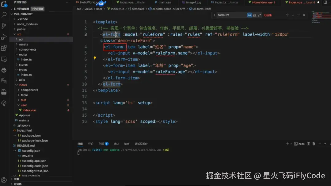 比如现在iFlyCode用element-plus框架实现了el-form的大致框架,也包含了定义的校验。