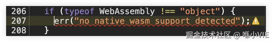 看一下打印这句警告的位置,发现是 WebAssembly 这个对象判断出了问题。