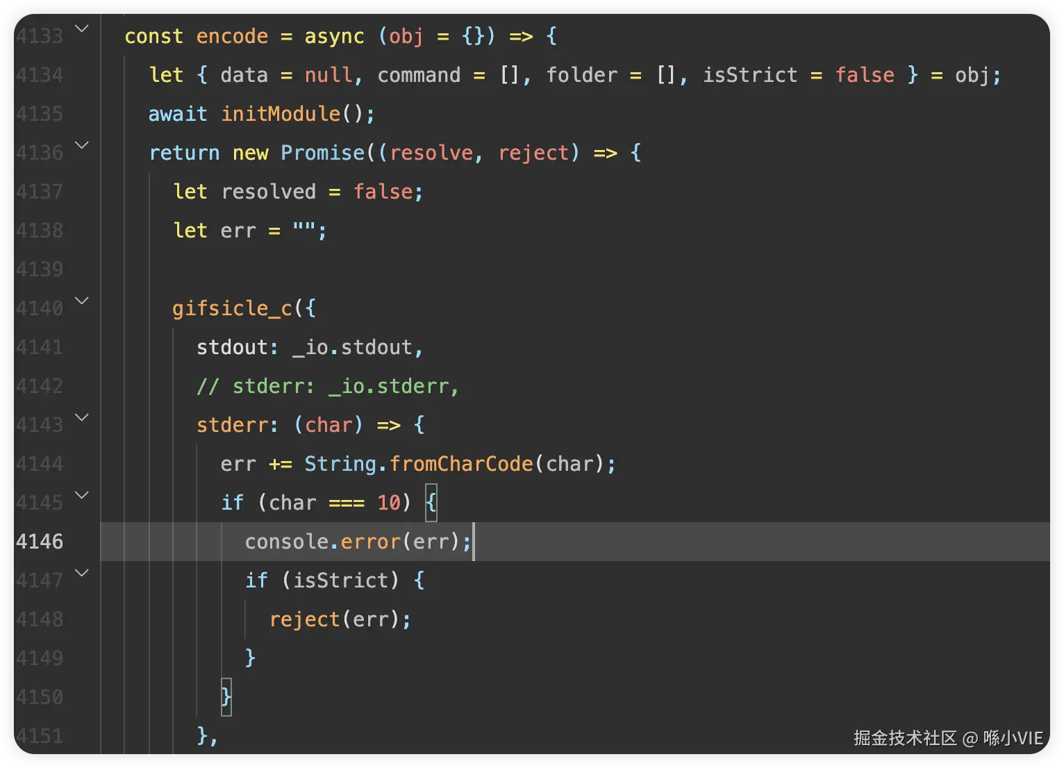 定位到4146行,由于报错信息有限也没有调用栈,只能看出来是gifsicle_c函数中报错。