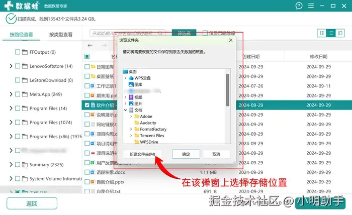 步骤3:点击【导出】后,在弹窗中选择恢复文件的存储位置。