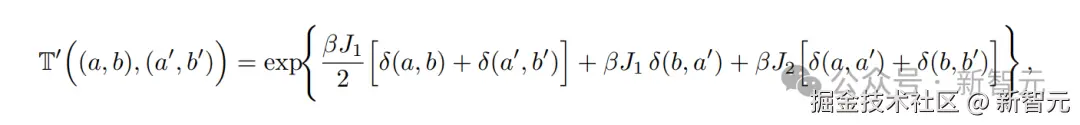 为了构建转移矩阵,研究者使用了重叠对的形式化方法来处理方程(1),每个单位格有一个自旋,得到转移矩阵 T。
