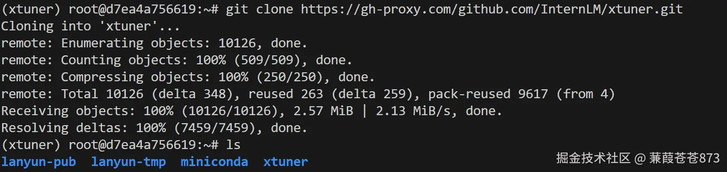 加速后:git clone https://gh-proxy.com/github.com/InternLM/xtuner.git