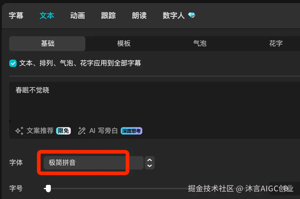 文本字体中选择“极简拼音”字幕中就会出现拼音了。