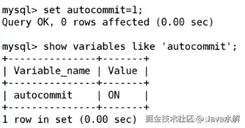 mysql> SET AUTOCOMMIT=1; #SET AUTOCOMMIT=1 开启自动提交