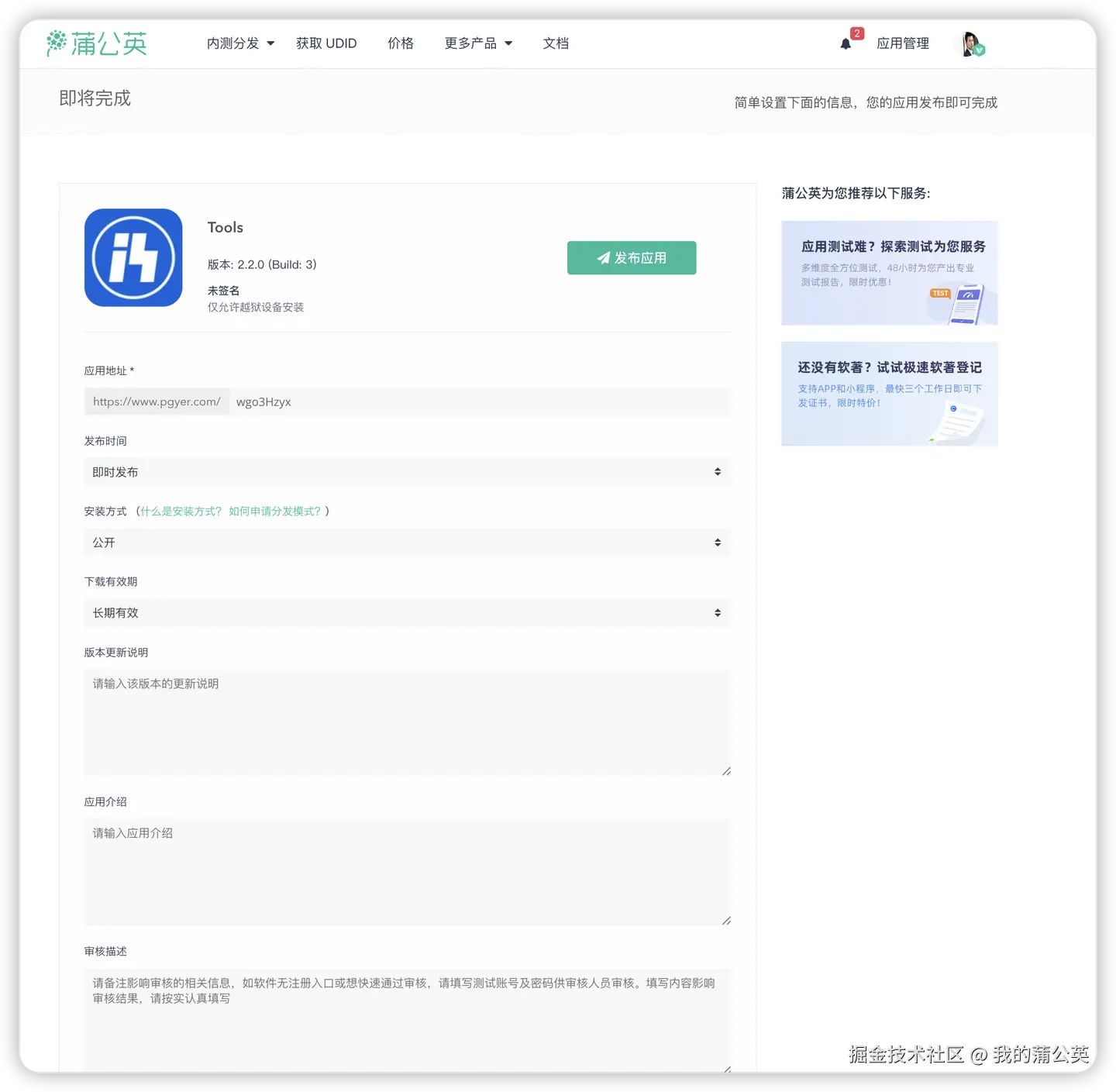 第二步:选择一个内测分发平台(以行业主流平台为例)