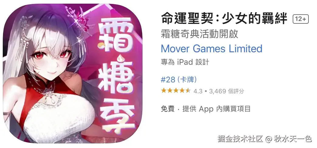 2024年9月,【命运圣契】由厦门极致互动在国内发行,归功于游戏本身“特色”,【命运圣契】话题度一直居高不下。2025年2月12日,繁中版【命运圣契:少女的羁绊】在中国港澳台地区上线,更大尺度的宣传及诱惑性的推广使得其首月的表现就远超国服同期水平。