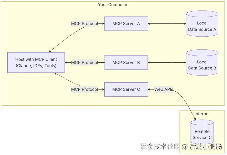 MCP的优势在于,它允许AI在没有过多干预的情况下完成复杂的任务。开发者只需要为AI配置相关的资源和权限,而AI则可以根据预定义的协议自动决定如何操作这些资源。这使得开发者能够更加专注于设计和优化AI的智能决策,而不必被繁琐的编程工作所束缚。