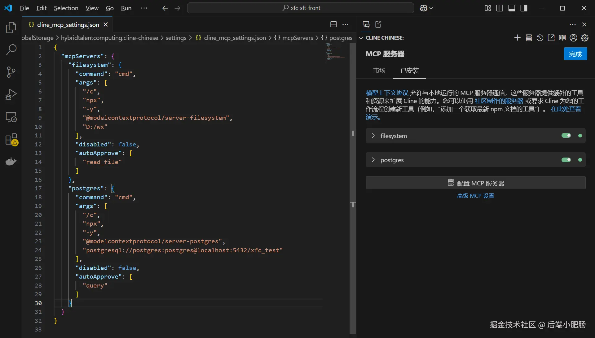 针对这个需求我找了两个对应的MCP Server,分别是File Syetem(github)、PostgresSQL(github)。下面就从MCP Server在VS Code中的集成开始,一步一步带大家体验如何用零代码方案复刻类Manus的智能体能力。