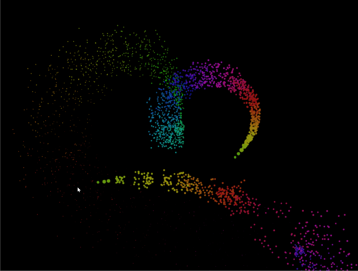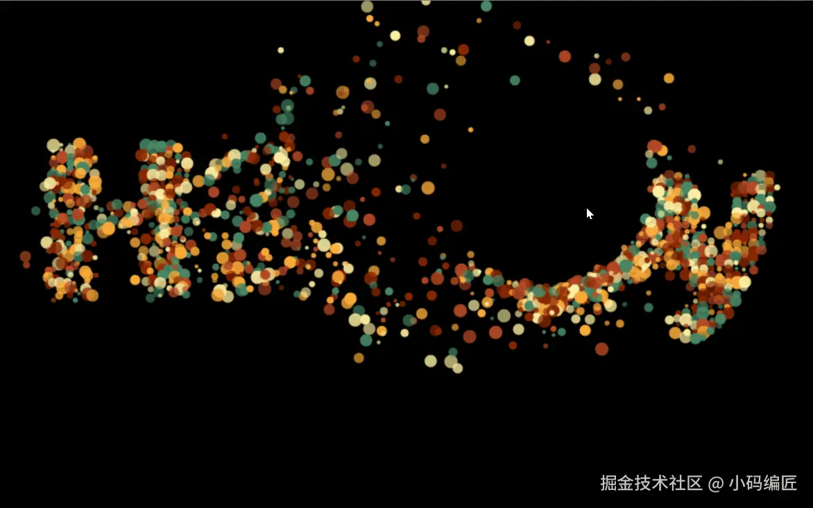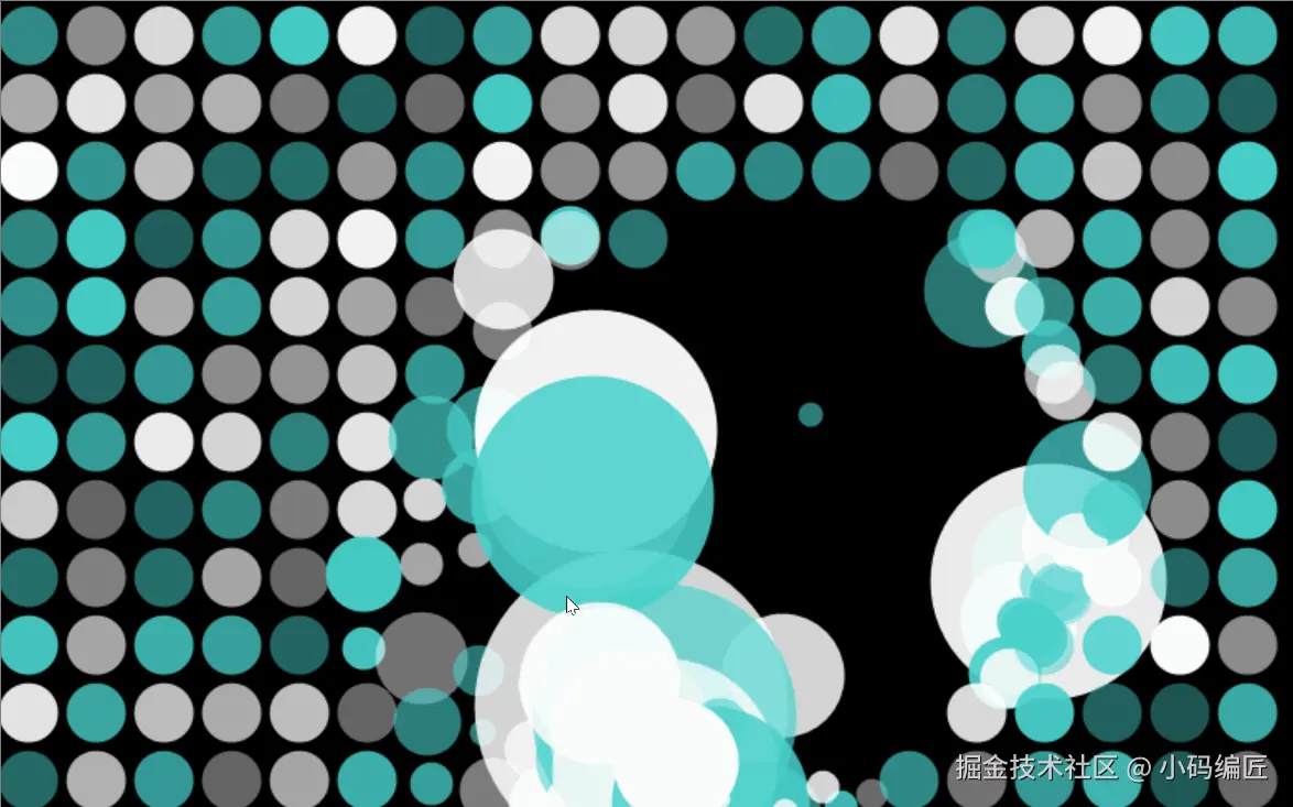 思想很简单,Init() 方法根据屏幕大小和相关粒子大小参数产生粒子对象数组particles,然后在Onpait事件中反复调用Start()绘制粒子即可。其中可以根据鼠标位置,改变粒子大小和位置。