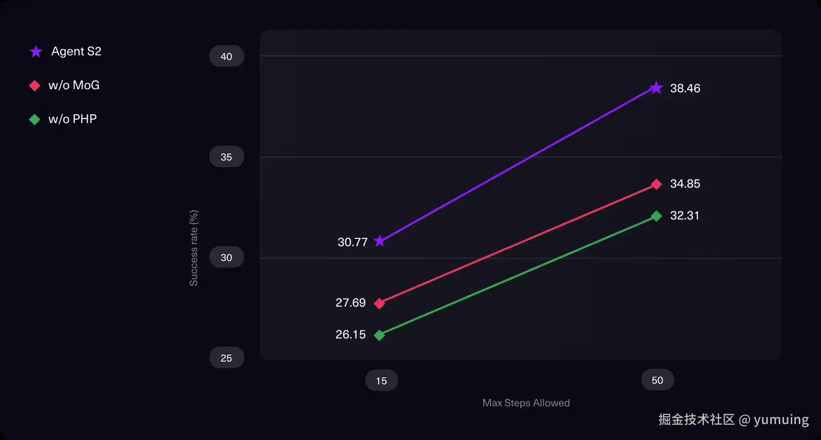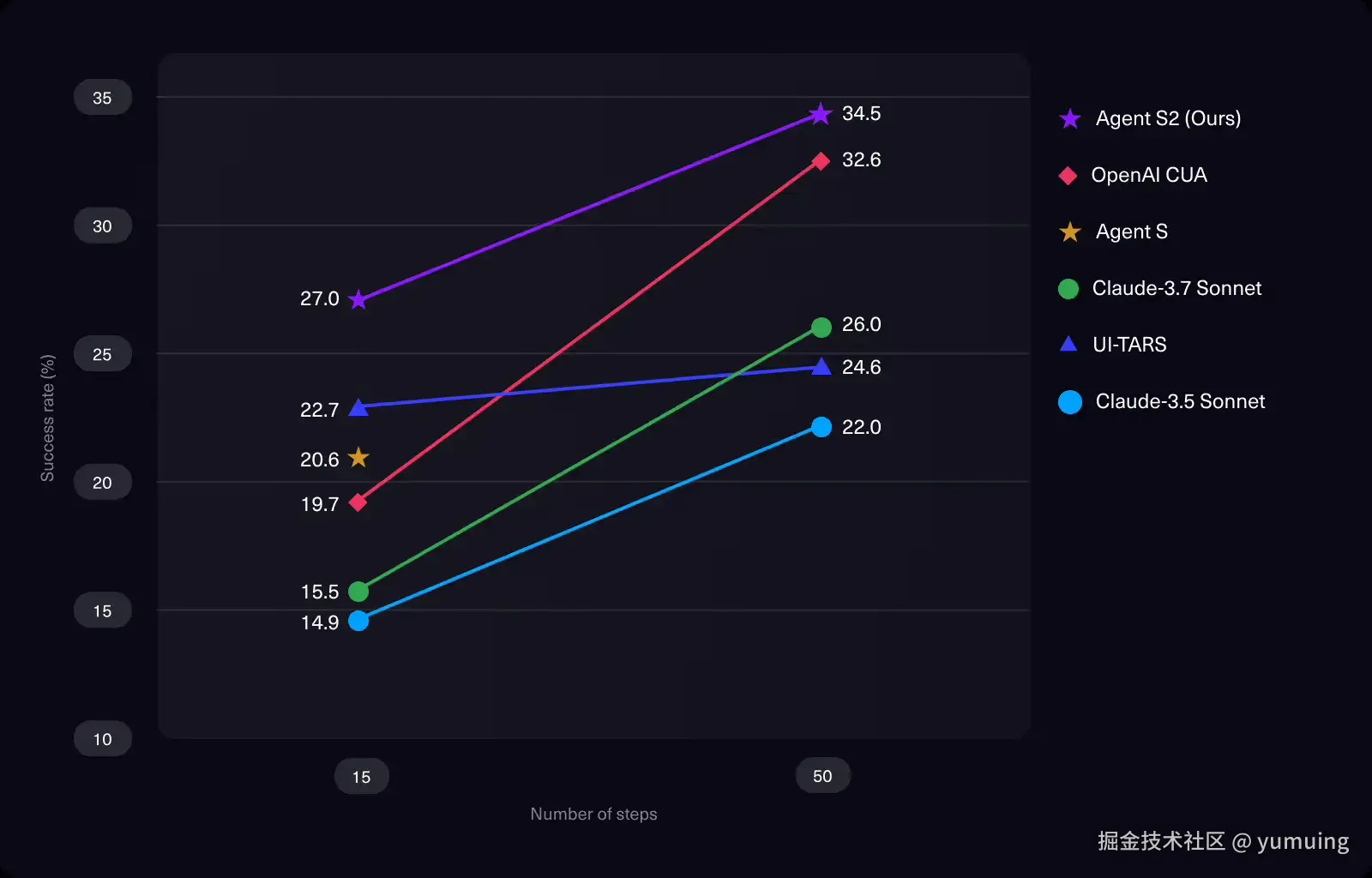 - 50 步长任务成功率 34.5%,提升 32.7%,复杂任务的优势更明显,比如处理需要 10 多个步骤的 “多应用协作任务”,成功率比传统代理高近三分之一。