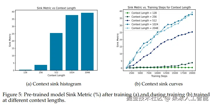 作者还探索了上下文长度是否会影响注意力黑洞的形成。为此他们从头训练了一个 LLM,并改变了上下文长度。直觉上来说:上下文越长,token 之间信息混合就越多,注意力黑洞就越强烈。他们的观察确实支持这个观点:在长上下文中训练的模型中,注意力黑洞更常见;而在非常短的上下文下训练的模型中,几乎不存在注意力黑洞。