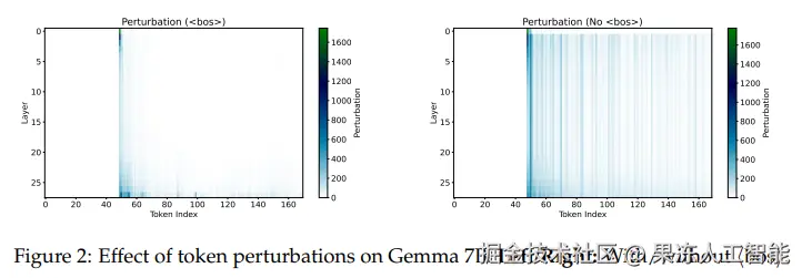 为了验证这个想法,研究者在 Gemma 7B 模型上做了扰动分析,观察有没有注意力黑洞的情况下,扰动对模型的影响。结果显示,在没有注意力黑洞时,扰动的影响更大。