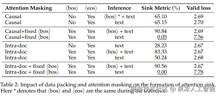 实验结果表明是后者:如果你训练时用了 放在第一个位置,模型就会用它当黑洞;如果你推理时把它去掉,注意力黑洞就会消失。不过,即使你训练时不用 ,模型还是会在第一个位置形成一个黑洞(虽然会弱一些)。总之,预训练策略会影响注意力黑洞的形成方式,但无论如何,第一个 token 成为注意力黑洞几乎是不可避免的。