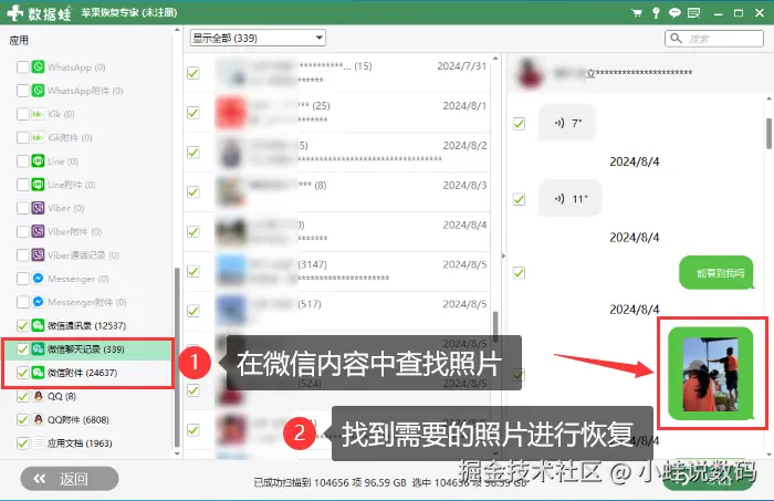 当微信图片已经被删除或格式化,但还没有被新数据覆盖时,微信聊天记录图片怎么恢复?在此,建议您使用专业的数据蛙苹果恢复专家来恢复。以下是使用该恢复软件的主要优点及恢复步骤: