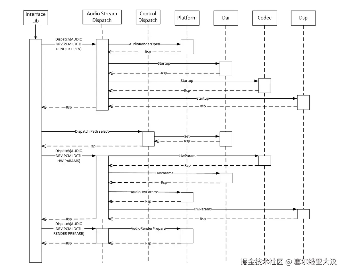 音频驱动框架模型,向上服务于多媒体音频子系统,便于系统开发者能够更便捷的根据场景来开发应用。向下服务于具体的设备厂商,对于Codec和DSP设备厂商来说,可根据ADM模块提供的向下统一接口适配各自的驱动代码,就可以实现快速开发和适配HOS系统。