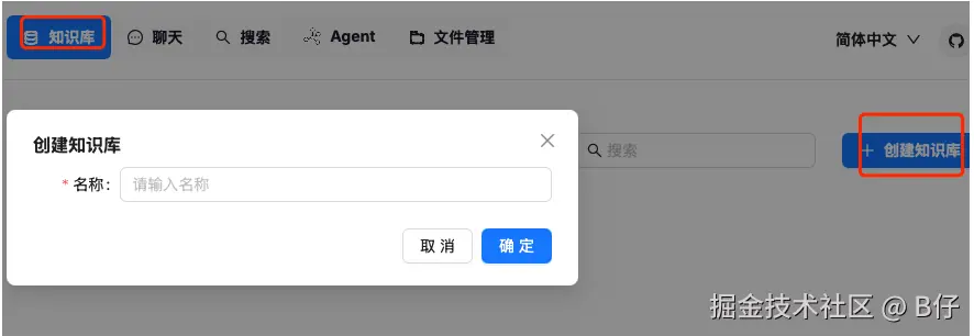 点击【知识库】-【创建知识库】