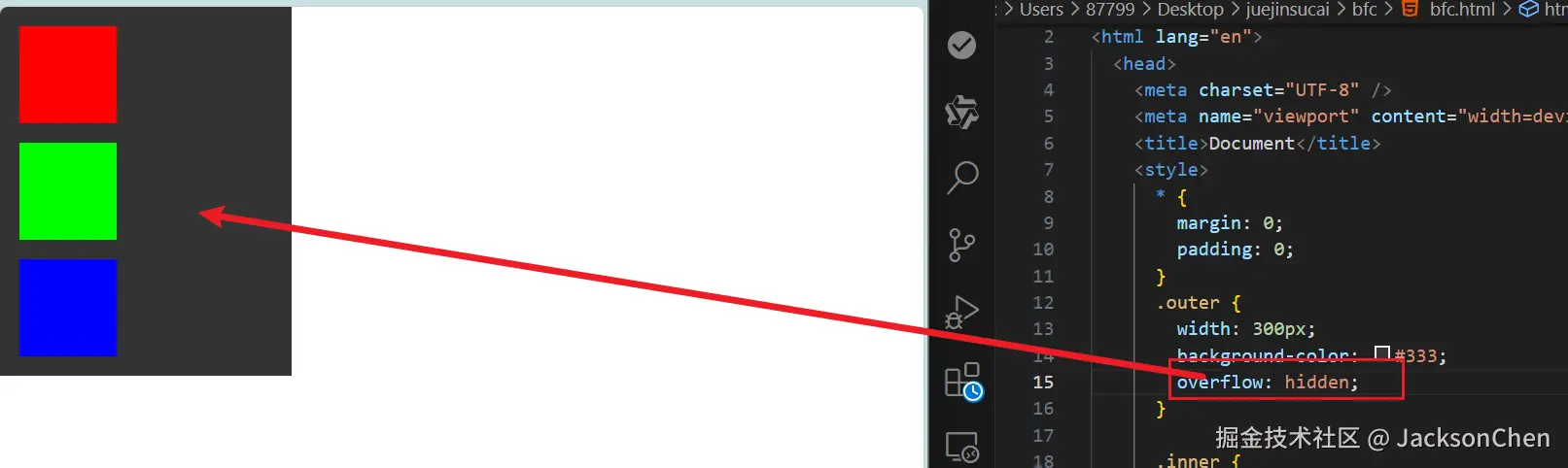 解释:可以理解为是元素的一个特殊功能,默认情况下是关闭的,当满足特定条件下将会被激活,也就是该元素开启了bfc,所以现在有两个问题,一是激活有什么用,二是具体怎么激活,我们继续来看!