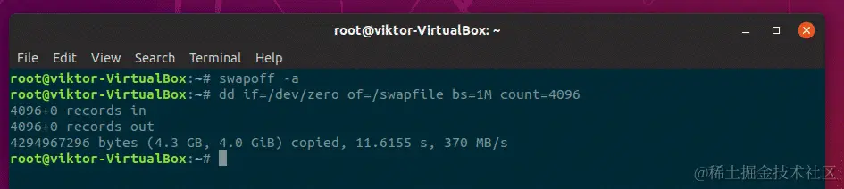 dd if=/dev/zero of=/swapfile bs=1M count=4096