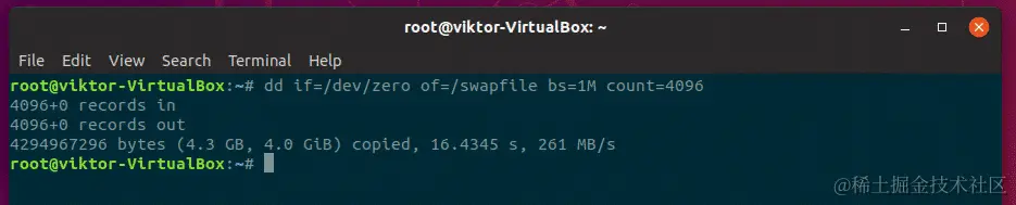 Here, the total size of the swap file will be bs*count = 1M x 4096 = 4GB