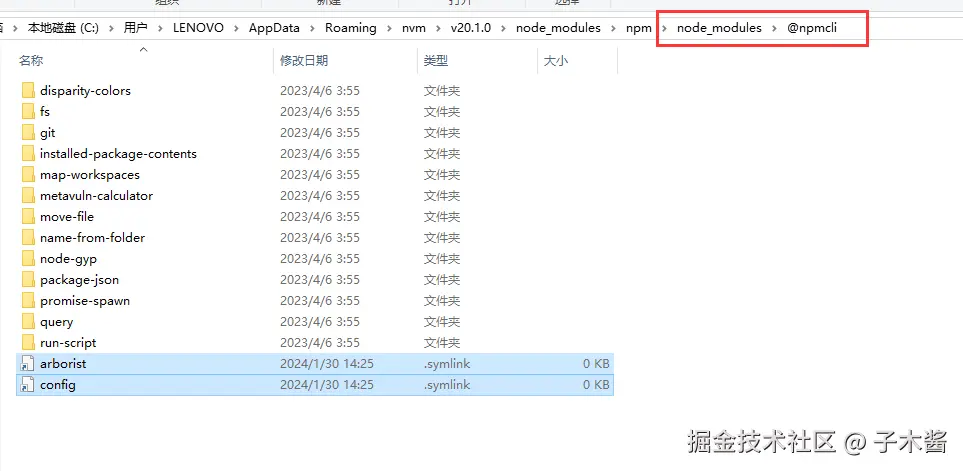 但是值得注意的是,除了node_modules文件夹下有这些链接,node_modules/@npmcli下也有,如图所以,我们要对照一下这些文件的位置,千万不要弄错了