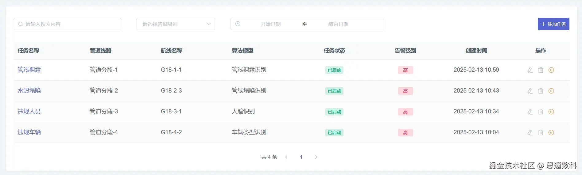 - 技术:基于开源框架(如TensorFlow、Kubernetes),平台支持实时监控、历史回溯与任务调度。热力图展示隐患分布,趋势分析预测故障高发区域。