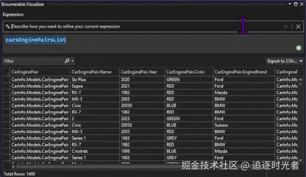 IEnumerable 可视化工具现在为其可编辑表达式提供内联聊天功能,使用户能够直接在 IEnumerable 可视化工具中利用 AI 为可编辑的表达式创建复杂的 LINQ 查询。