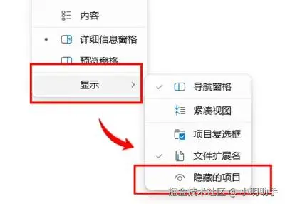 如果自己并没有误删U盘文件的记忆,但是有一部分U盘的文件没有显示出来,U盘数据怎么恢复?我们可以检查一下自己U盘中的隐藏文件。在U盘页面中点击【查看】,再选择【显示】,最后点击【隐藏的项目】即可。