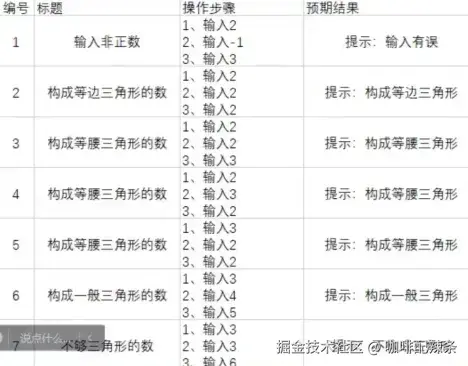 - 设计测试用例:基于判定表,为每一行(一个输入组合及其对应的输出结果)设计一个测试用例。