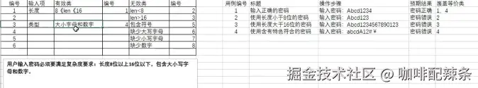 等价类是按照输入数据的效果相近或相同进行划分的类型。然后从这些分类中选择有代表性的数据作为测试数据。例如,在用户输入密码时,要求密码必须满足复杂度要求:长度8位以上16位以下,包含大小写字母和数字。根据这个要求,可以将输入数据划分为不同的等价类。