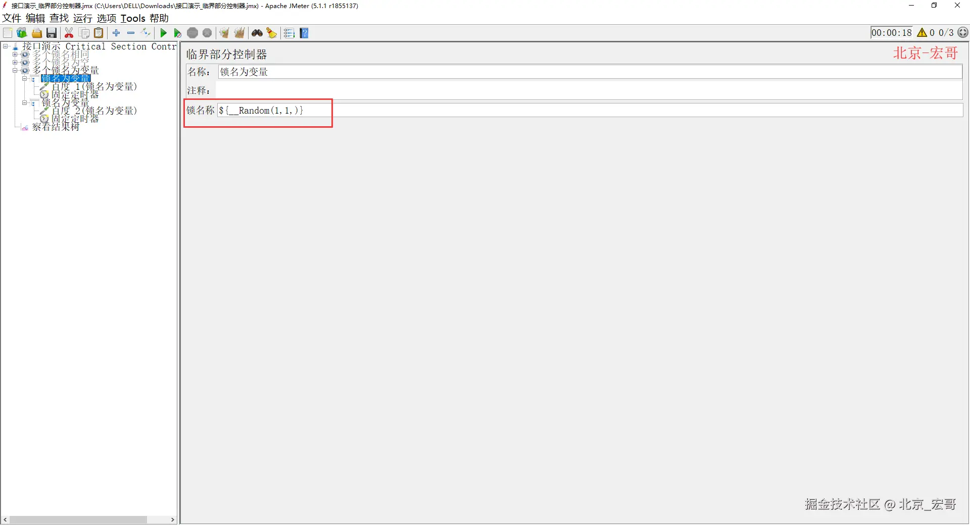 我们先来看一下,官方原汁原味的解释:The Critical Section Controller ensures that its children elements (samplers/controllers, etc.) will be executed by only one thread as a named lock will be taken before executing children of controller.