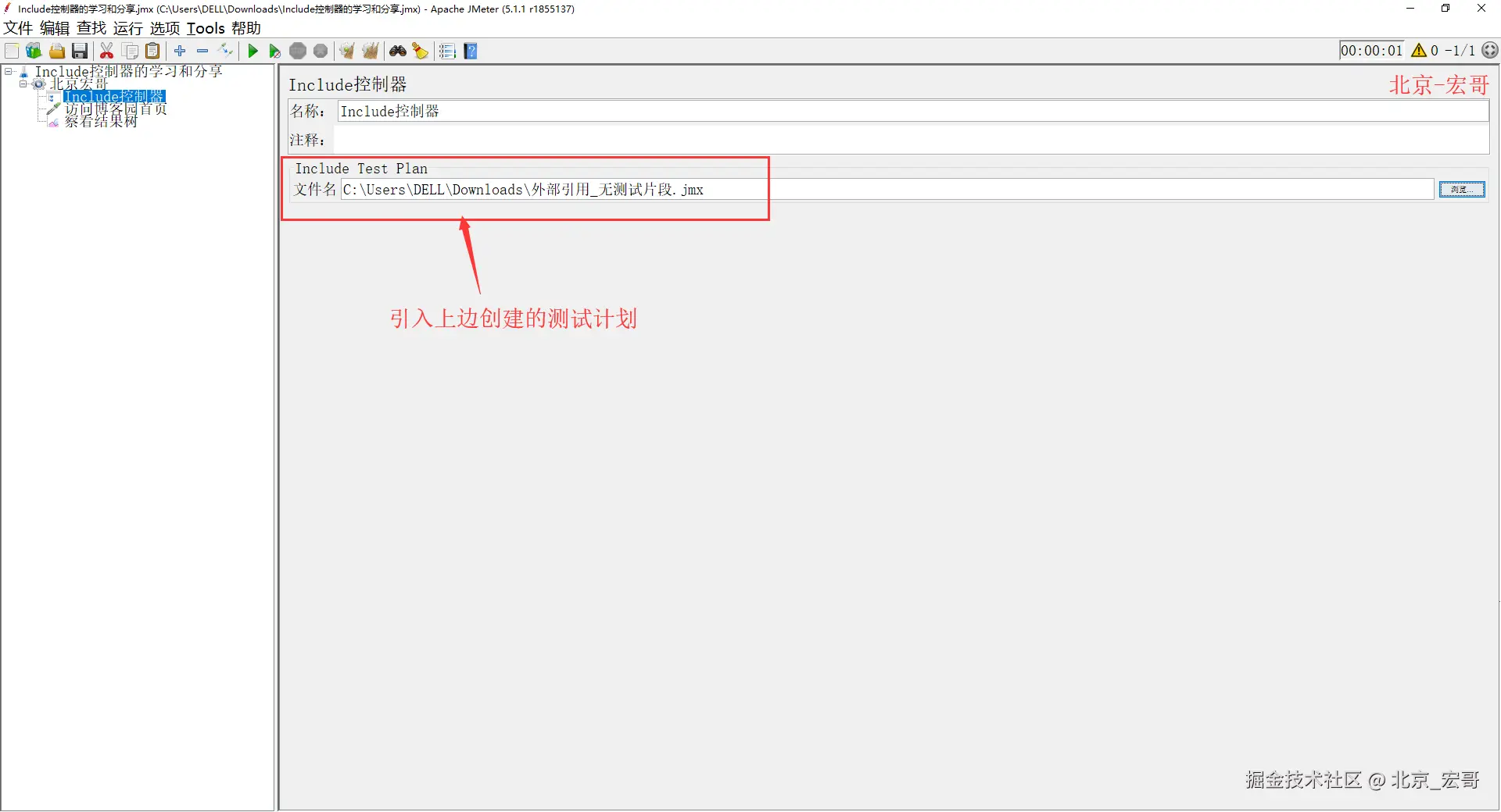 宏哥推荐小伙伴或者童鞋们可以将 Include控制器 与 Module控制器(传送门)一起对比着学习,Include控制器 是从外部文件引用,只能引用整个测试片段的内容,Module控制器 是从内部文件中引用,引用上相对比较灵活,可以只引用部分测试片段或模块内容。这样一内一外不仅容易理解也容易记忆和学习。