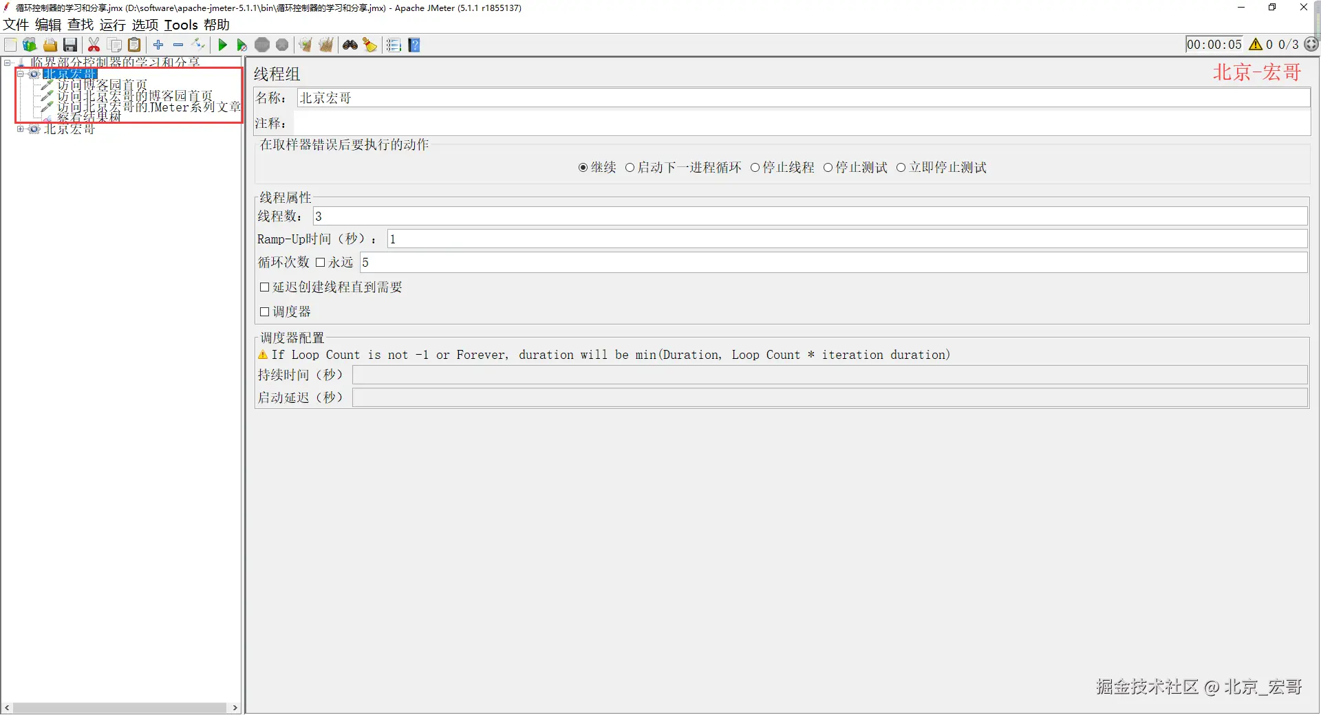 (1)控制测试计划执行过程中节点的逻辑执行顺序,如:Loop Controller、If Controller等;