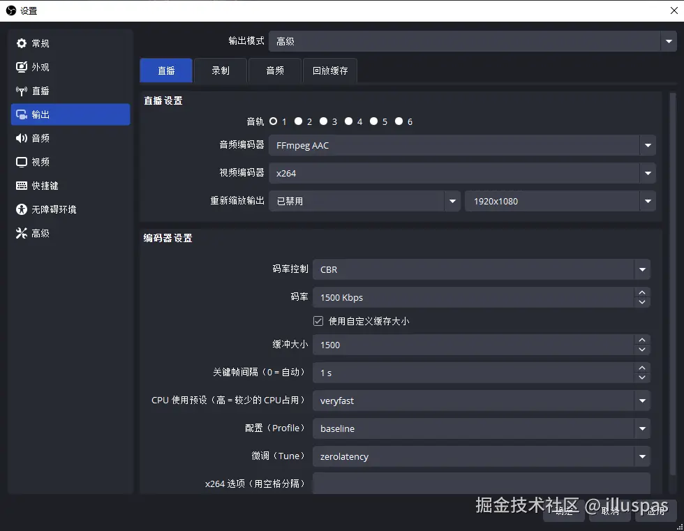 OBS参数设置(720p@30fps)