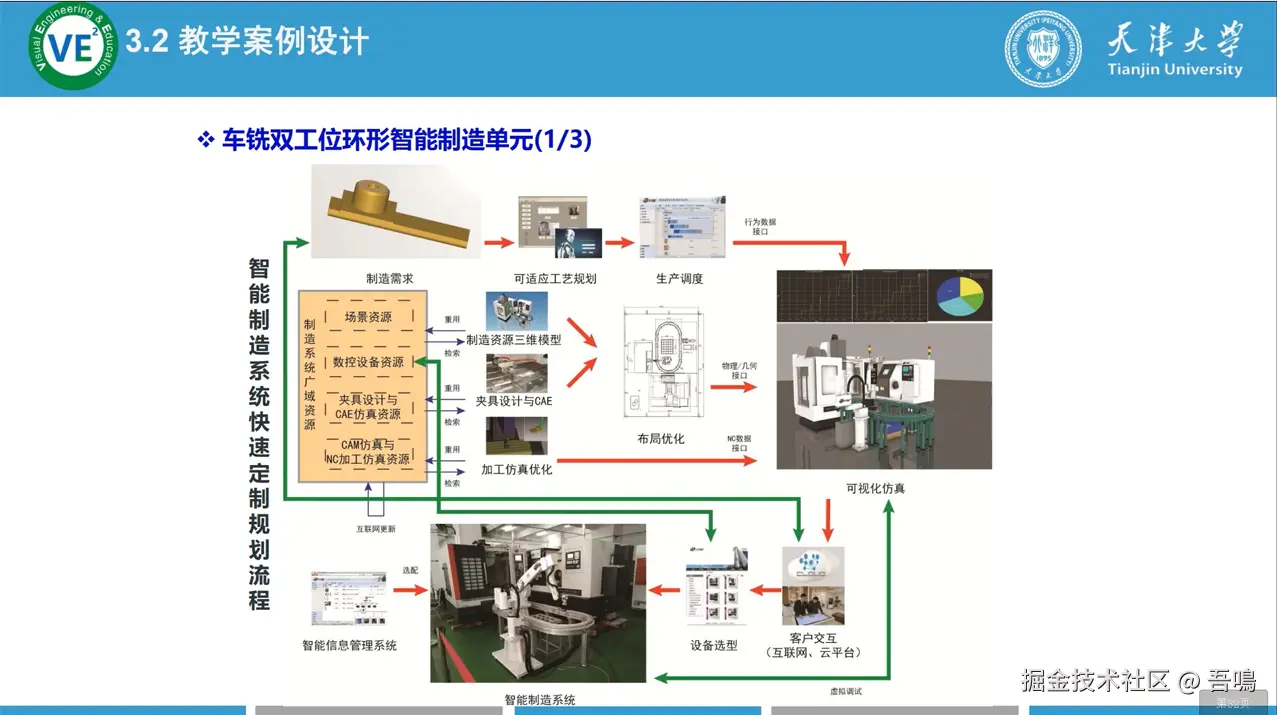结合天津大学的教学与实践案例,展示如何通过工程实例(如工厂自动化改造、车铣双工位智能制造单元)和模块化教学(如柔性智能制造系统)培养复合型人才。内容包括实际工程应用(如智能上下料系统)、教学案例设计流程(从需求分析到虚拟调试),以及多模块融合学习(如信息管理、设备状态监测),突出理论与实践结合的重要性,为智能制造领域输送具备创新能力的专业人才。