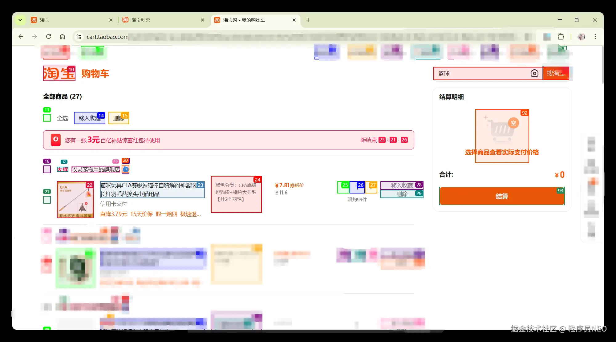 进入购物车页面后,自动解析网页,并选择需要购买的商品: