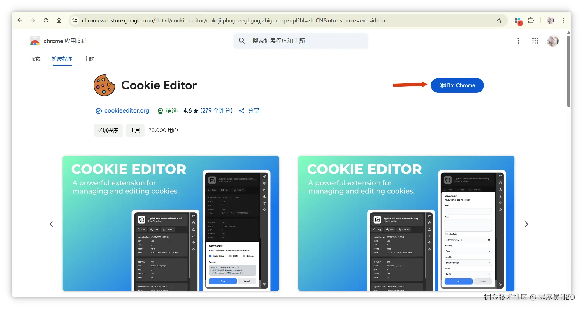 将 Cookie Editor 安装到浏览器中: