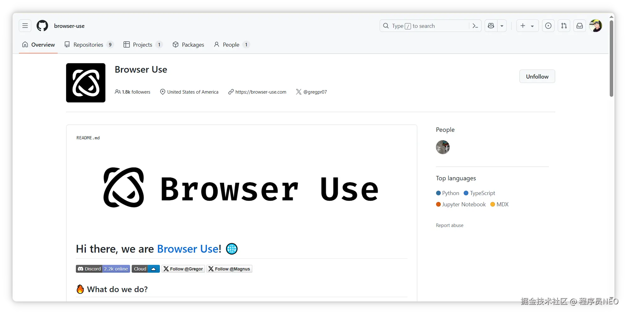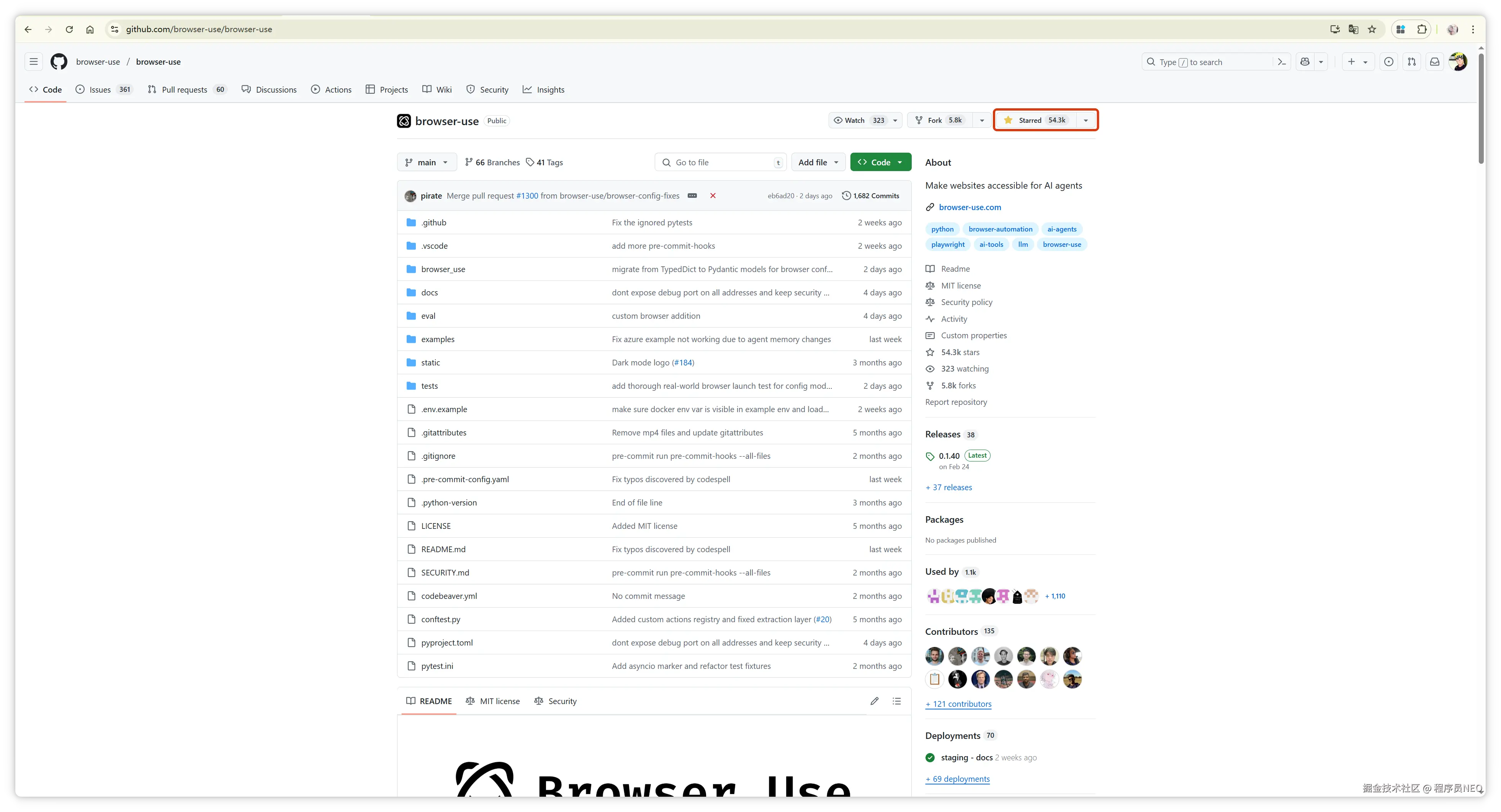 首先,访问 Browser use 的 GitHub 页面:Browser Use · GitHub