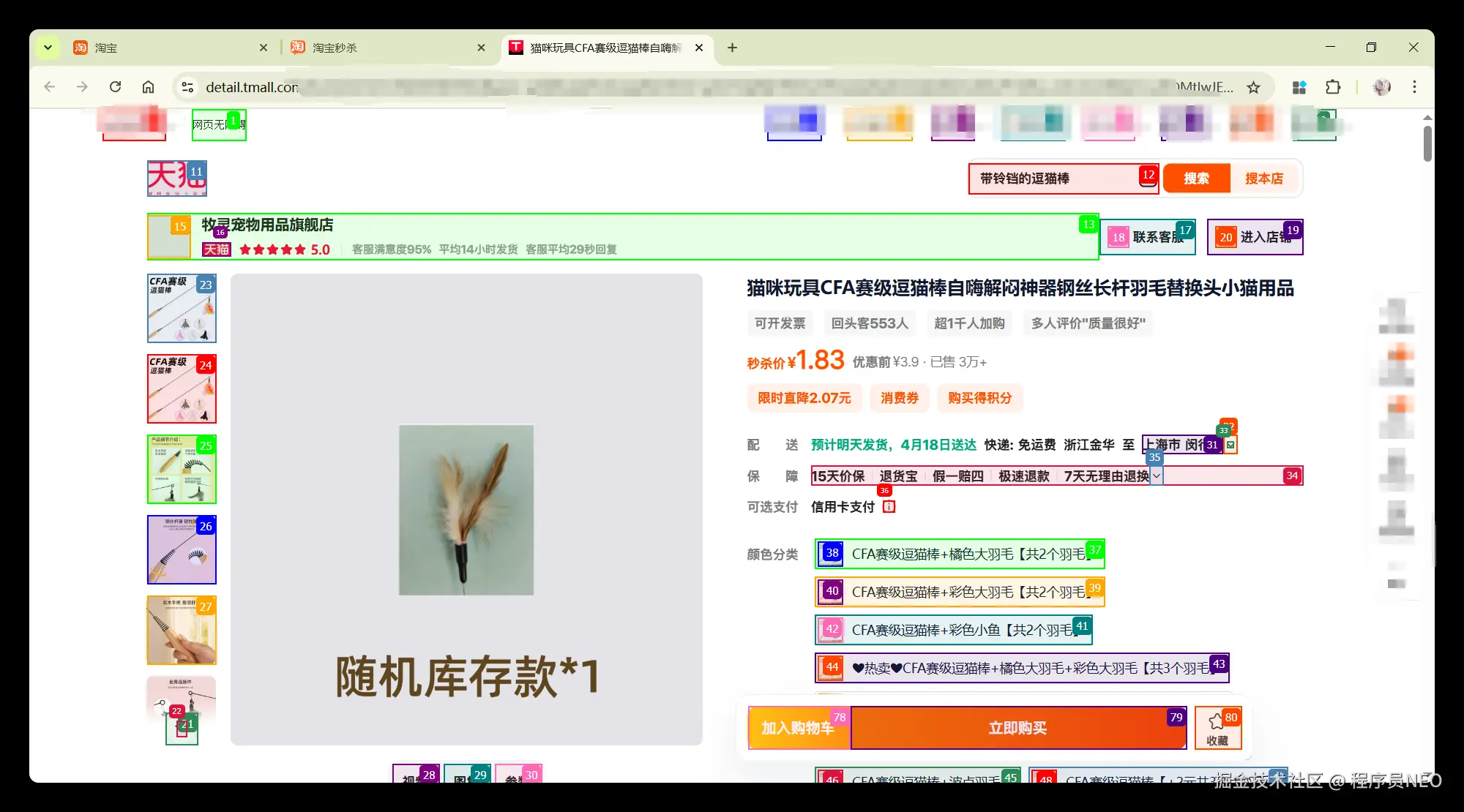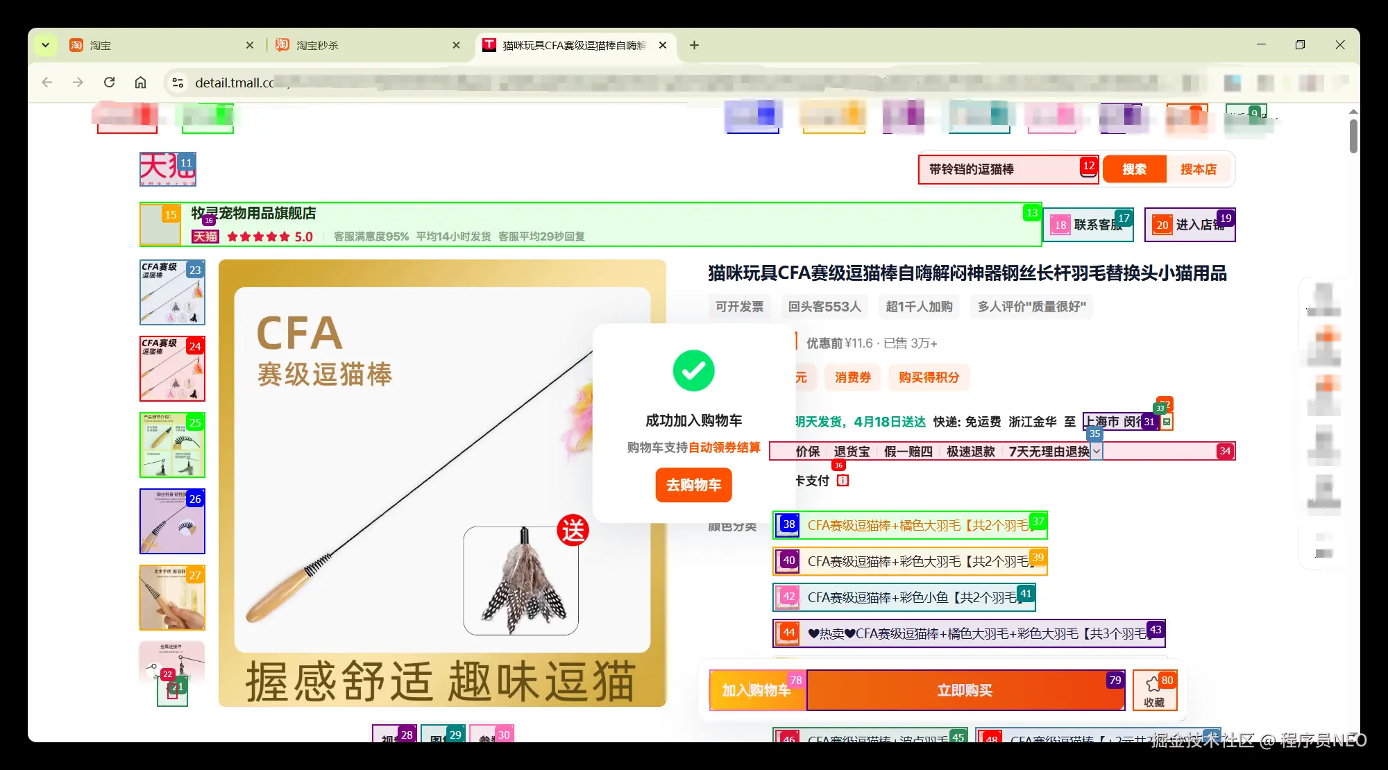 随后自动进入逗猫棒的商品详情页,并解析该页面: