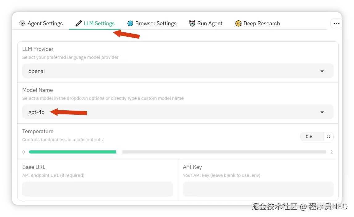 还需进行一步设置,进入 LLM Settings 选项卡,将模型名称修改为: