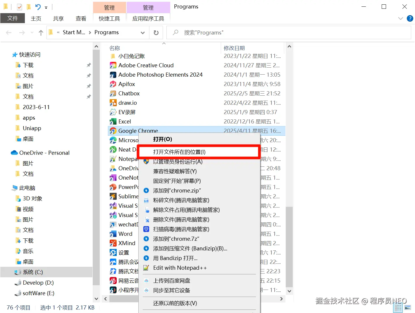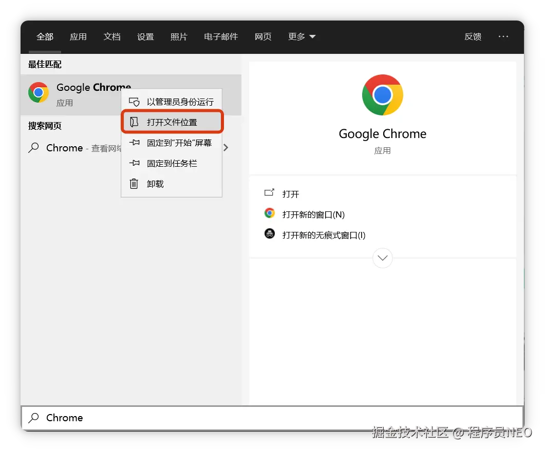 需继续右键,进入 Chrome 安装目录: