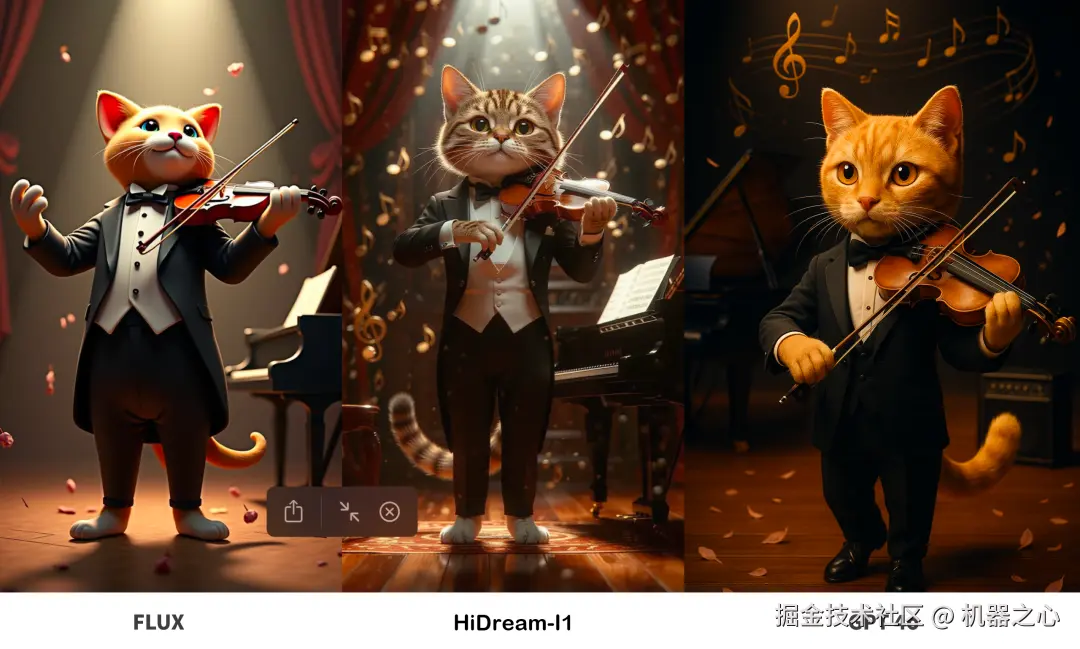 整体上看,HiDream-I1 生成的图在真实感、细腻度上和 GPT-4o 是非常接近的,有时还能更胜一筹。在和 Flux 相比时,这个特点更加明显。