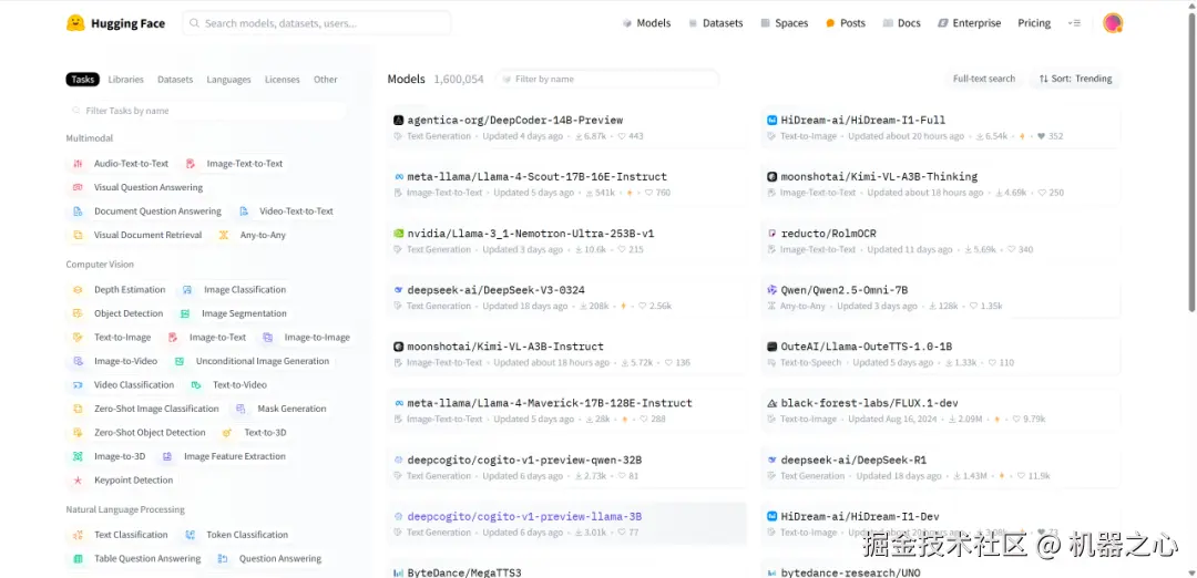 在 HuggingFace Trending 榜单上,HiDream-I1 飙升到了第二名。这说明 HiDream-I1 的下载量、点赞数都很可观,在社区中非常受欢迎。